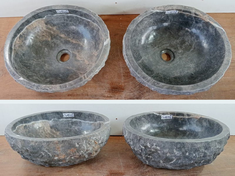 Grijs / wit waskommen uit dezelfde steen U683 (35x30cm)Afmetingen set U683:
